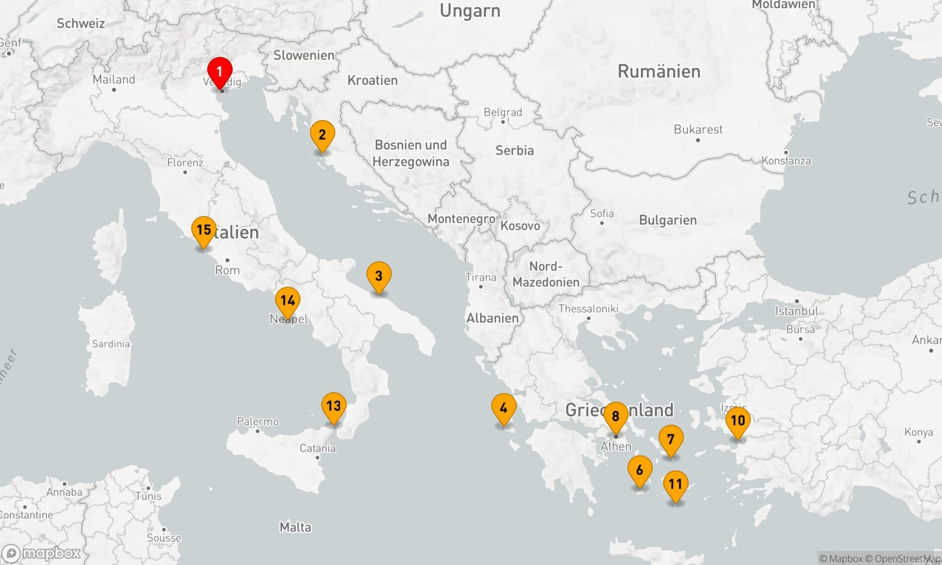 Panama-Kanal Neuengland-Kanada Karibik-Mittelamerika Australien-Neuseeland Antarktis Schwarzes Meer Ostsee-Baltikum Nahost Indischer Ozean Fernost Atlantik Alaska-Kanada Pazifik-Südsee Norwegen-Nordkap England-Irland