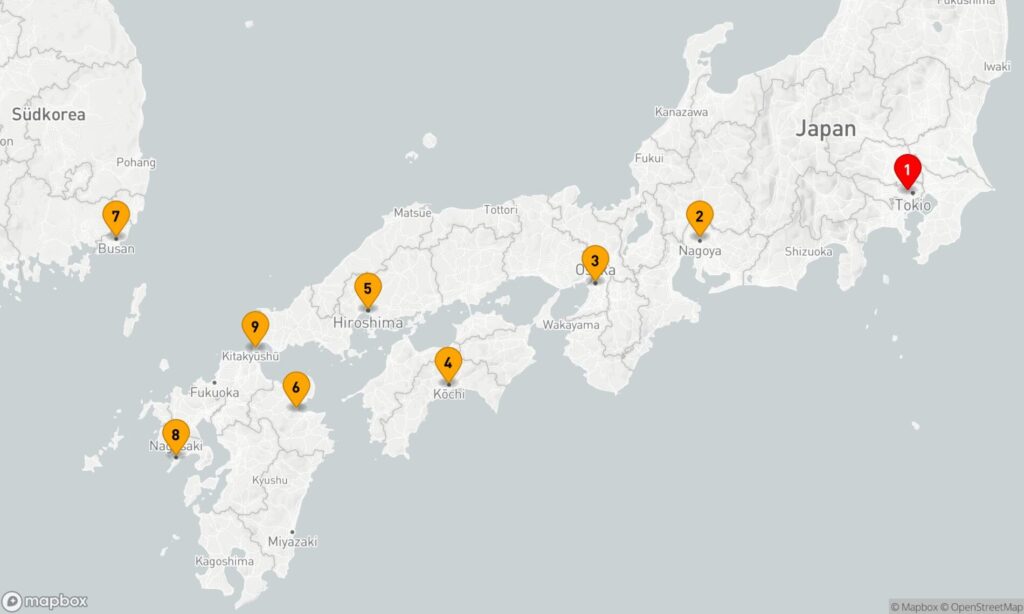 Von Tokyo aus über Südkorea