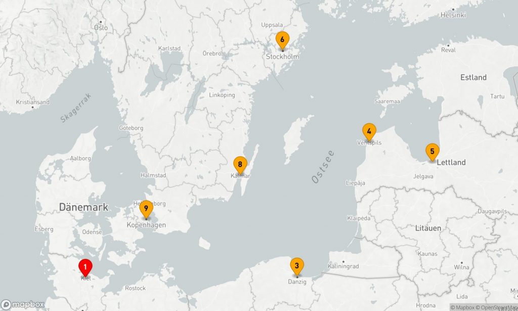 In die Ostsee ab/bis Kiel
