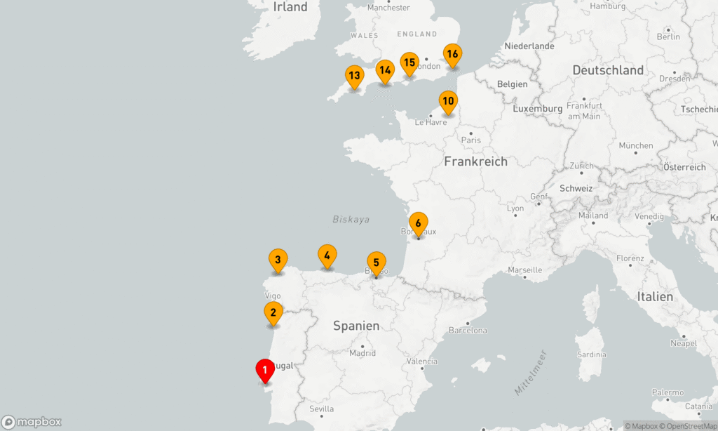 Golf von Biskaya, Spanien, Frankreich & Ärmelkanal