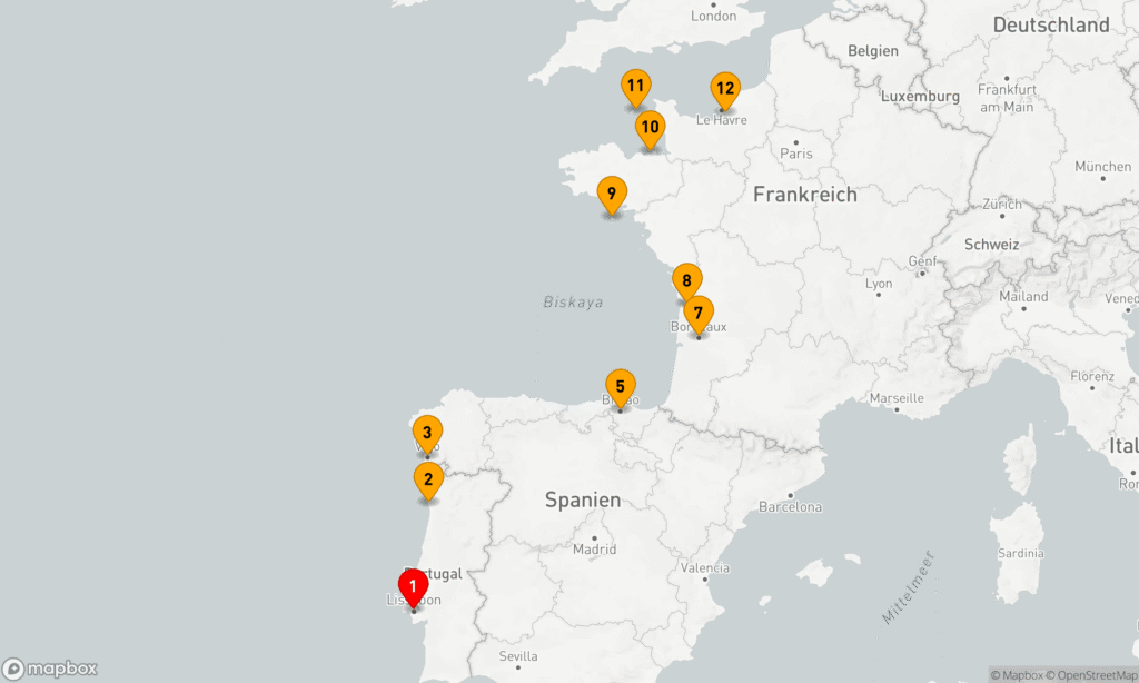 Iberische Halbinsel und Städte am Atlantik