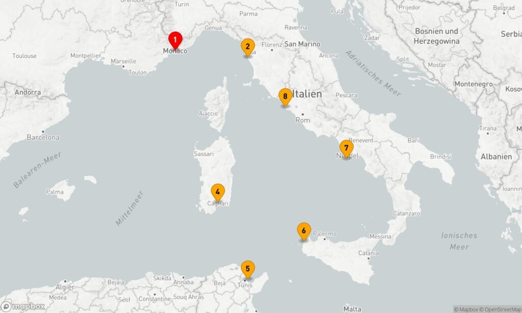 Italien mit Monte Carlo & Tunesien