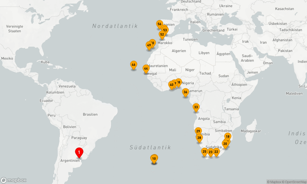 Südatlantik, Westküste Afrikas & Spanien