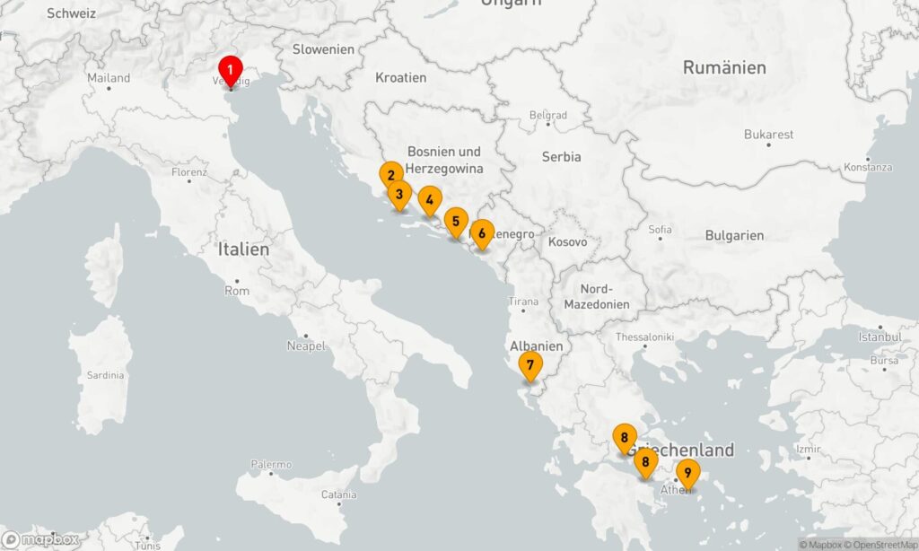 Von Venedig entlang der Küste der Balkanländer bis Athen